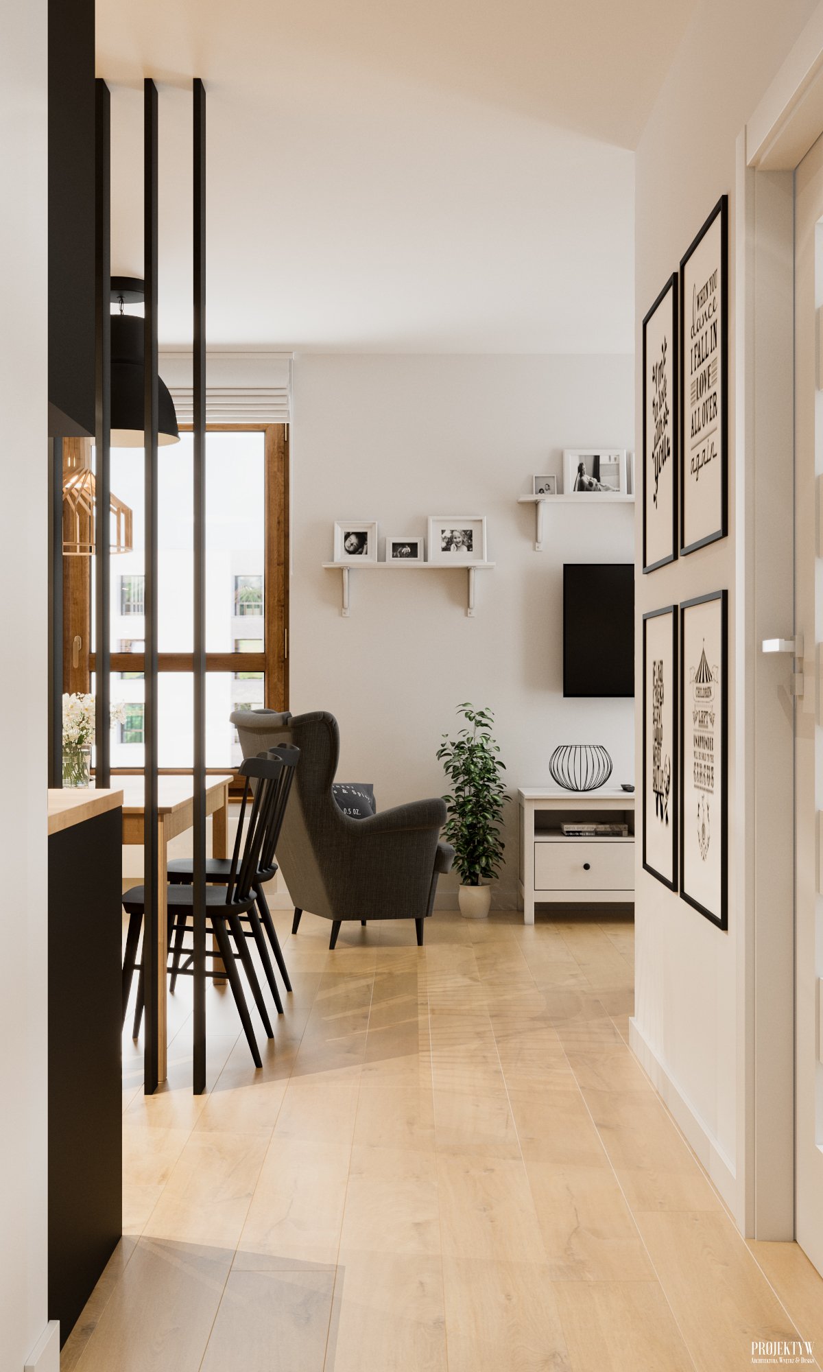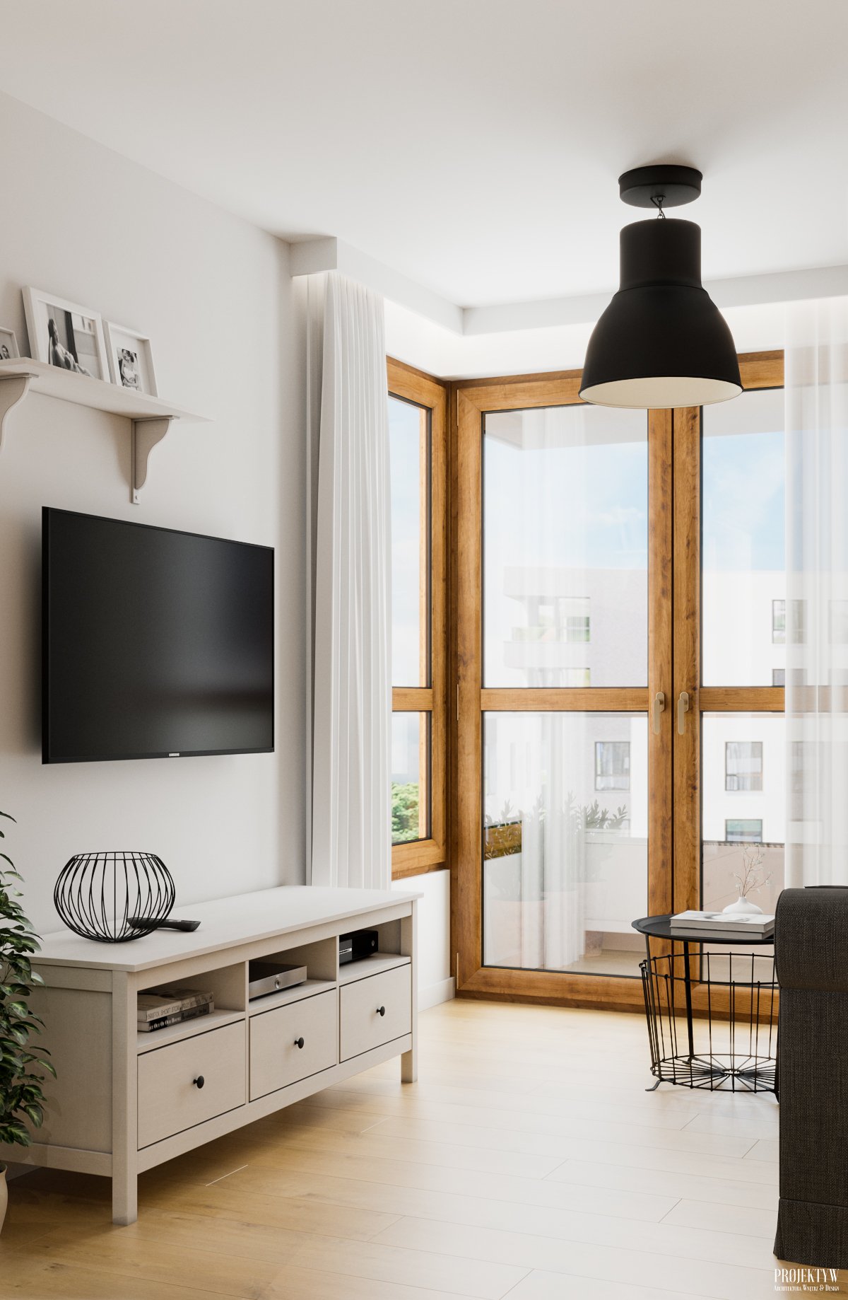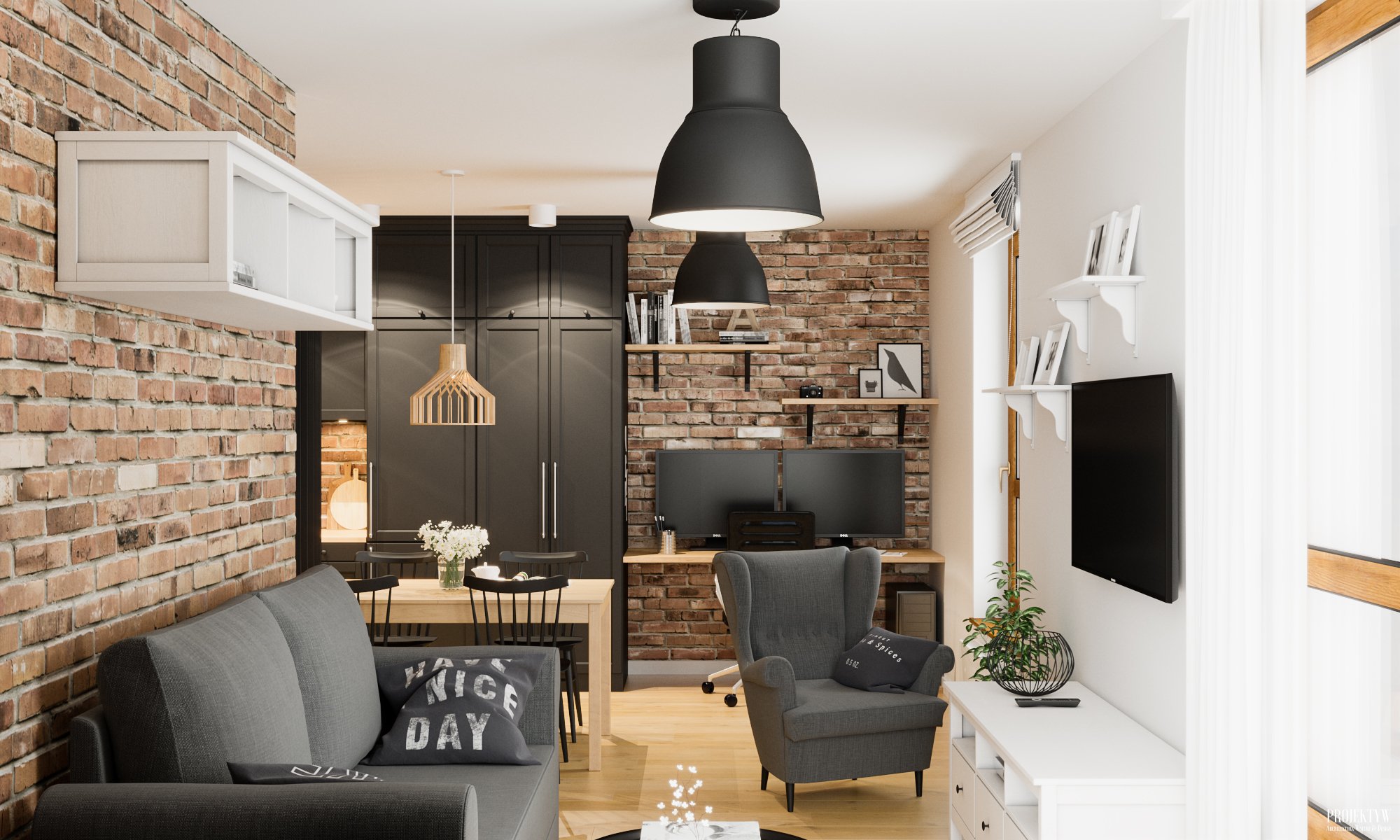 Projekt salonu z aneksem kuchennym, Kraków